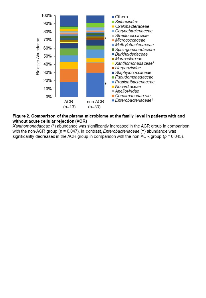 Comparison of the plasma microbiome at the family level in patients with and without acute cellular rejection