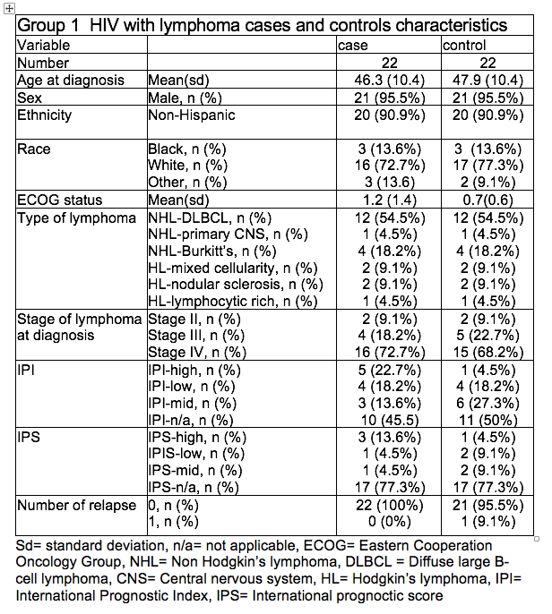 Group 2 HIV lymphoma with HSCT cases and controls characteristics