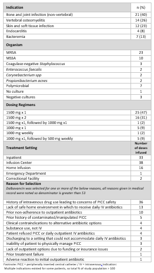 Table 2. Dalbavancin Use
