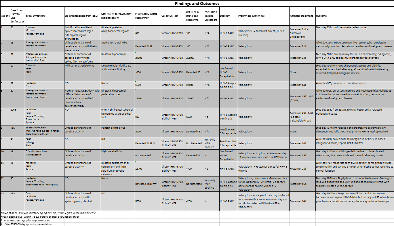Findings and Outcomes in HSCT Patients
