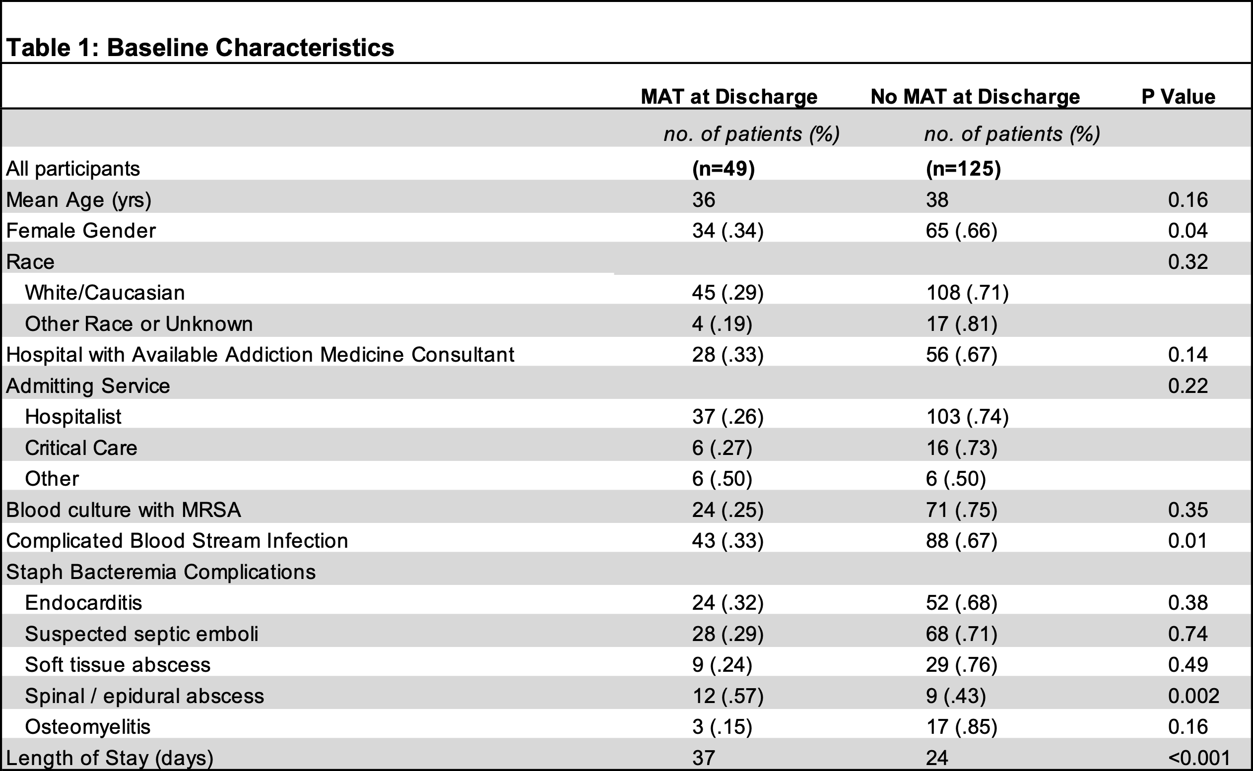 Table 2: MAT & Clinical Outcomes in S. aureus Bacteremia
