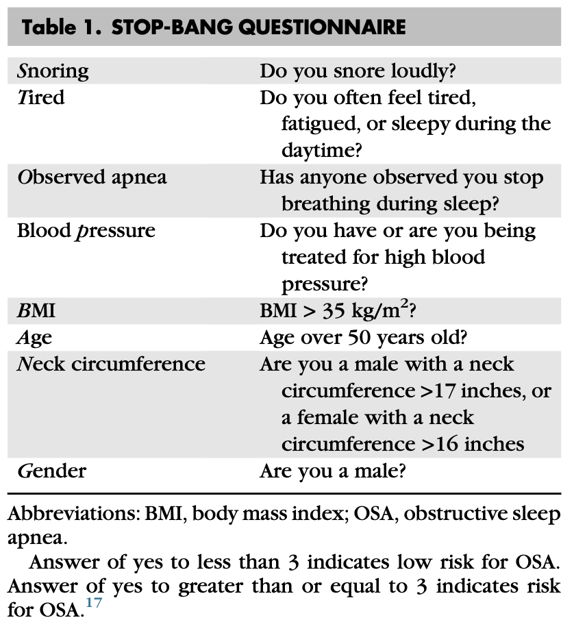 References: 1. Practice guidelines for the perioperative management of patients with obstructive sleep apnea: an updated report by the American Society of Anesthesiologists Task Force on perioperative management of patients with obstructive sleep apnea. Anesthesiology 120:268, 2014