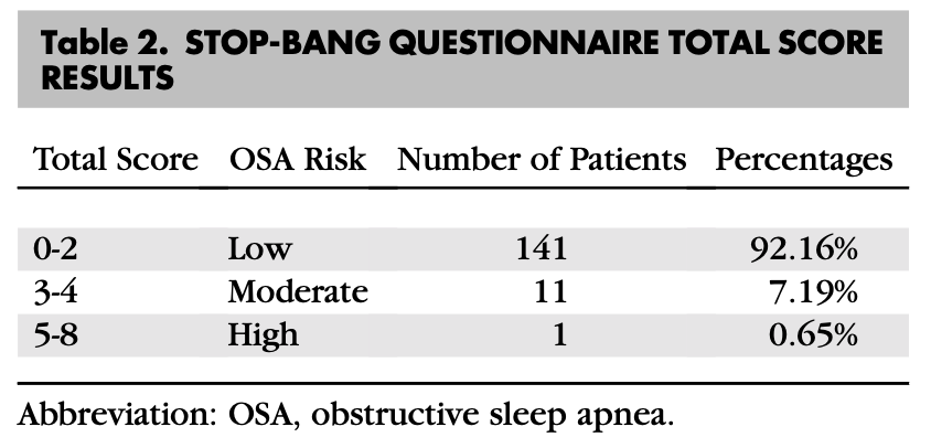 Table 2. STOP-BANG Questionnaire Total Score Results