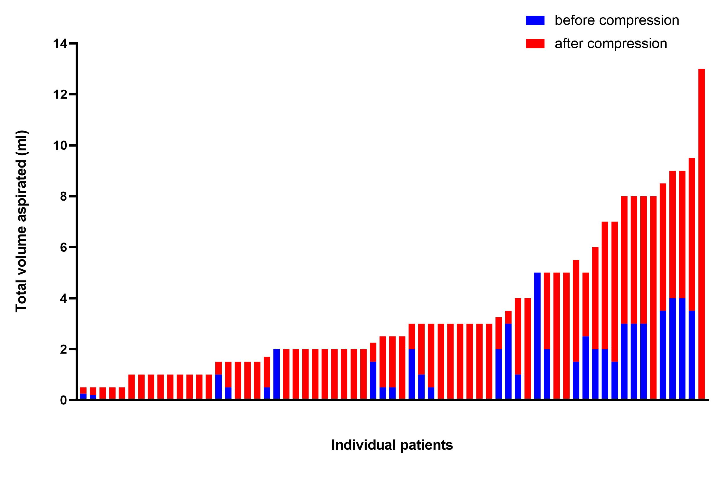 Volume of arthrocentesis in non-effusive knees with and without pneumatic compression