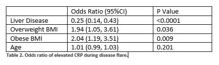 Table 2. Odds ratio of elevated CRP during disease flare.