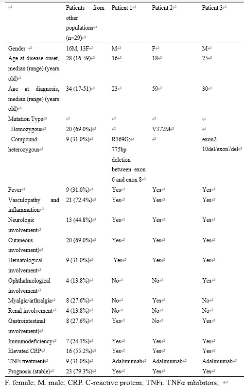 Table 1 Clinical characteristics of adult-onset DADA2 patients