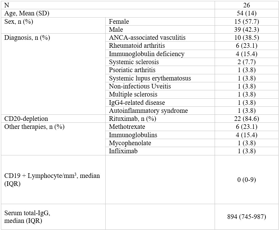 Filippo Fagni1, Katja Schmidt2, Daniela Bohr3, Larissa Valor Mendez4, Ioanna Minopoulou2, Melek Yalcin Mutlu2, Fabian Hartmann2, Koray Tascilar4, Karin Manger5, Bernhard Manger2, Arnd Kleyer4, David Simon4, Georg Schett6 and Thomas Harrer2, 1University Hospital Erlangen; Department of Internal Medicine 3 - Rheumatology and Immunology, Erlangen, Germany, 2University Hospital Erlangen, Department of Internal Medicine 3 - Rheumatology and Immunology, Erlangen, Germany, 3Department of Internal Medicine 3, Rheumatology & Immunology, Friedrich-Alexander-University (FAU) Erlangen-Nurnberg and University Hospital Erlangen, Erlangen, Germany, 4Department of Internal Medicine 3 – Rheumatology and Immunology, Friedrich-Alexander-University Erlangen-Nürnberg and Universitätsklinikum Erlangen, 91054 Erlangen, Germany; Deutsches Zentrum Immuntherapie, Friedrich-Alexander-UniversityErlangen-Nürnberg and Universitätsklinikum Erlangen, Erlangen, Germany, 5Rheumatology Practice Bamberg, Bamberg, Germany, 6Universitätsklinikum Erlangen, Erlangen, Germany
