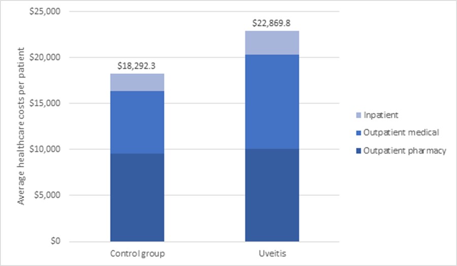 Figure 1. Average healthcare costs1 for PsA and PsO patients with and without uveitis during follow-up