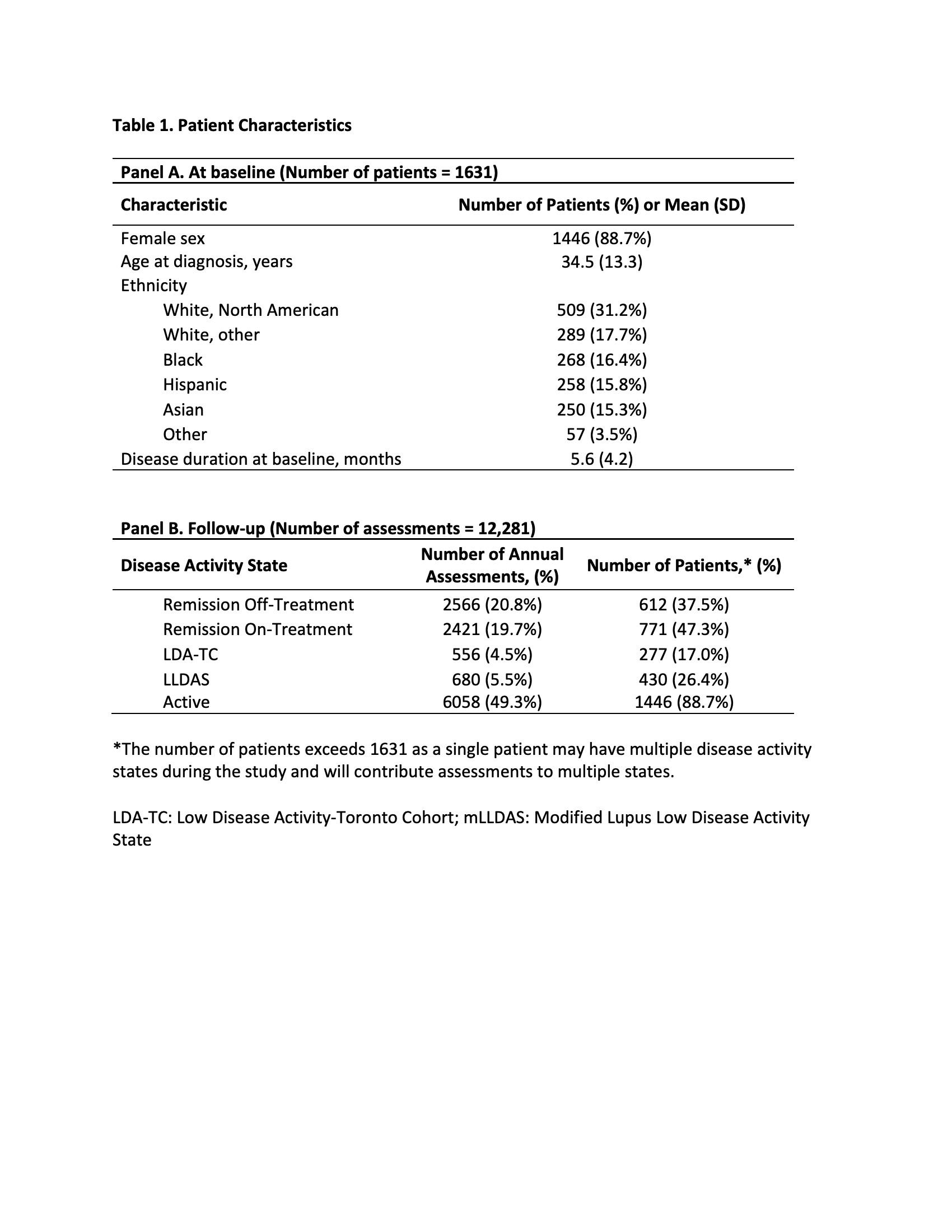 3) LDA-Toronto Cohort (TC): cSLEDAI-2K≤2, without prednisone or immunosuppressants
