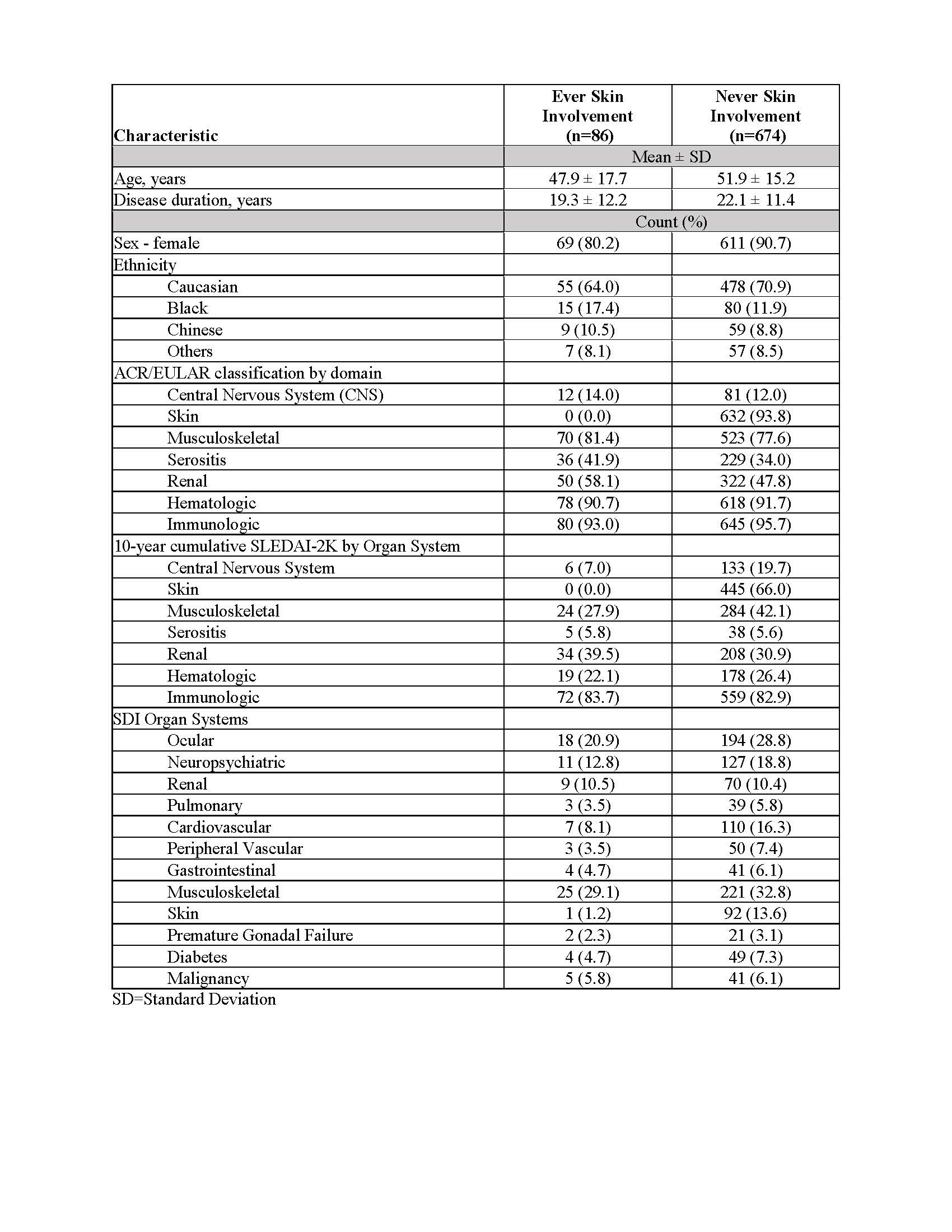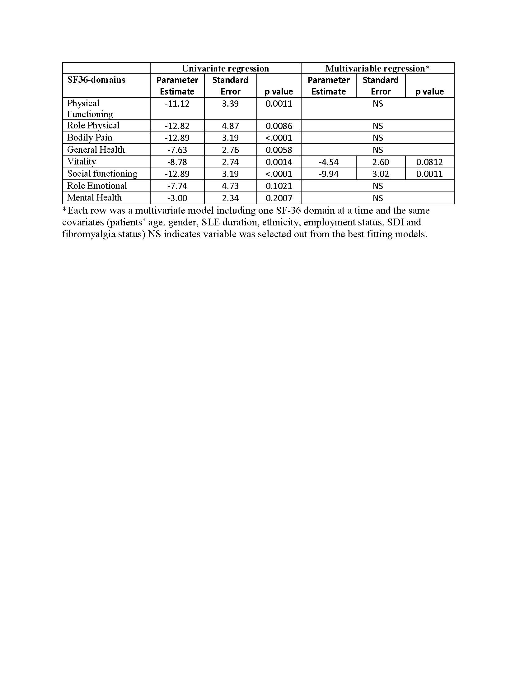 Table 2. Univariate and multivariate analyses to study the association of ever skin involvement with each of the eight SF-36 domains
