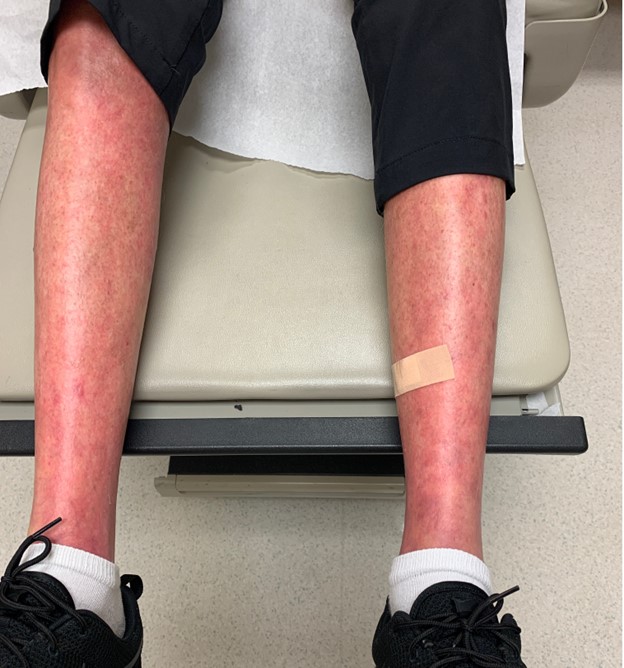 Case-1: Bilateral lower extremities when first symptoms of skin thickening and photosensitivity started 8-2020