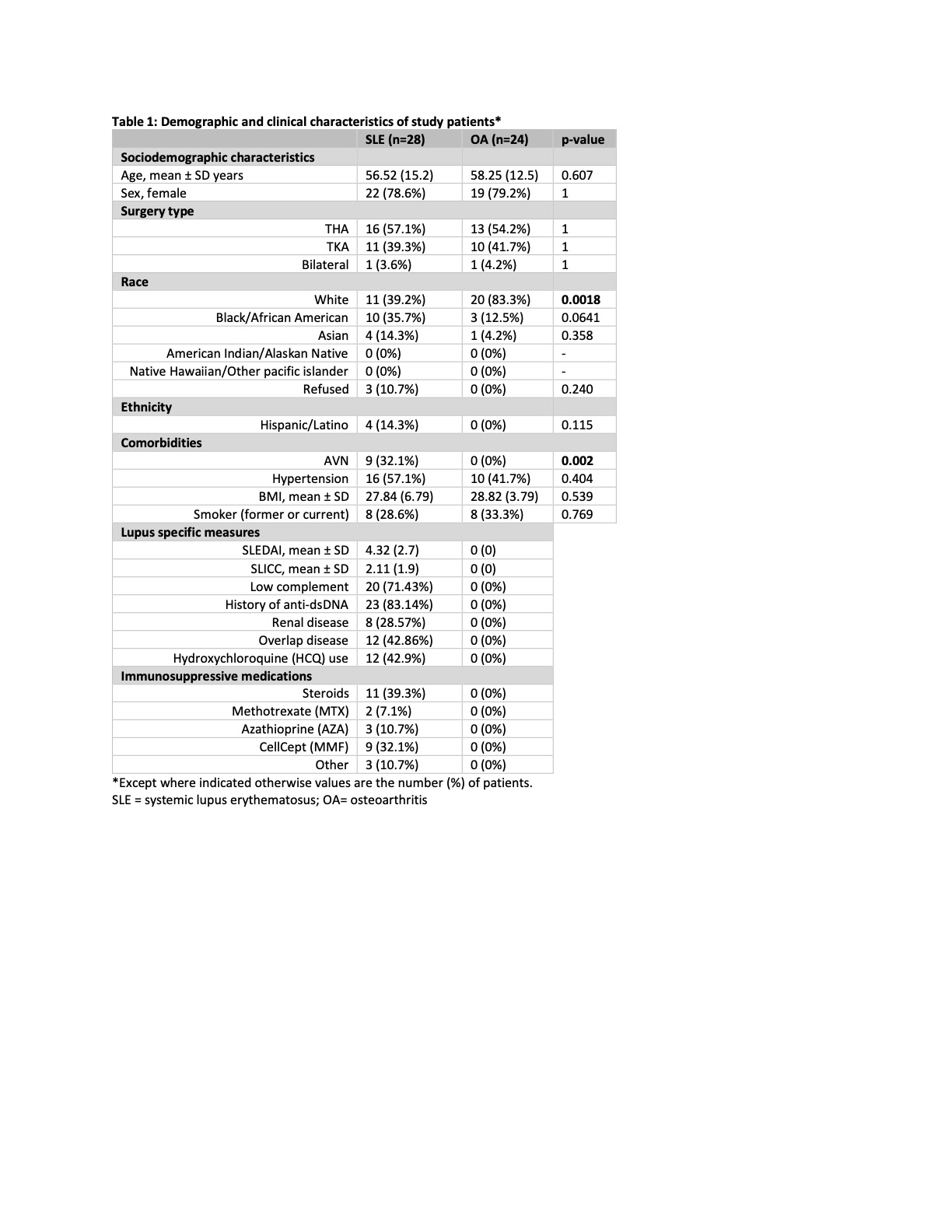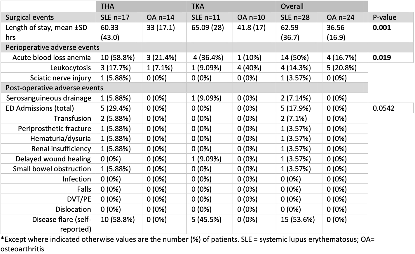 Table 2: Outcomes of Total Hip and Total Knee Arthroplasty in SLE vs OA control patients