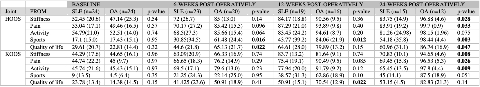 Table 3: HOOS/KOOS Patient-reported Outcome measure scores