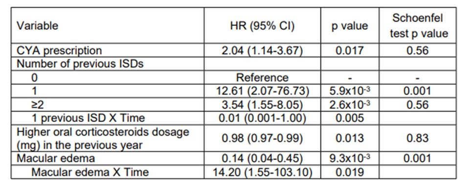 Kaplan-Meier failure curves representing good therapeutic response after immunosuppressive drug prescription for non-infectious uveitis.