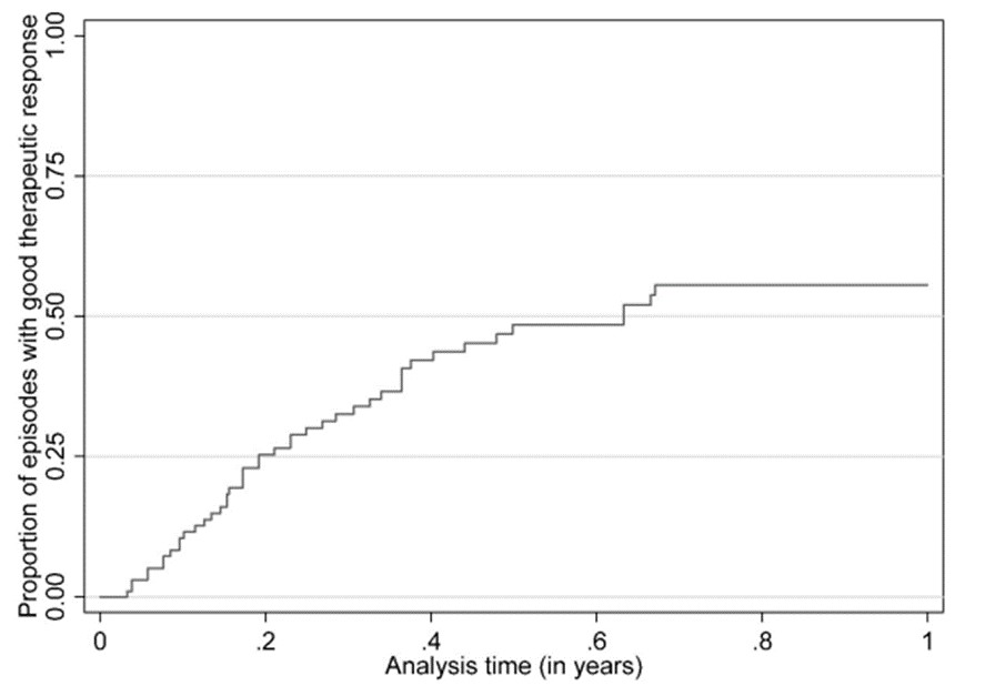 Multivariate Cox robust regression to analyze variables independently associated with the achievement of good therapeutic response.