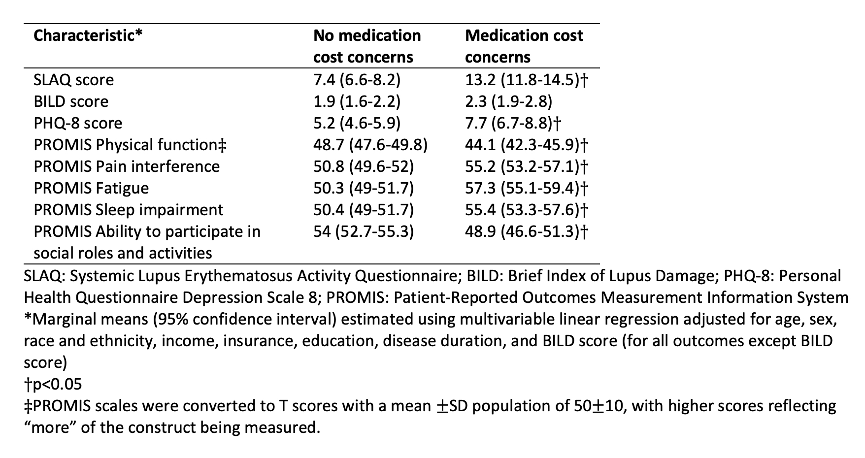 Table 1: Patient-reported outcomes in CLUES participants with and without medication cost concerns