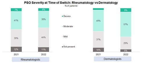 PSO Severity at Time of Switch: Rheumatology vs. Dermatology
