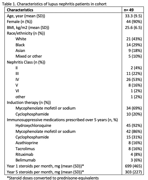 Conclusion: Patients with LN are exposed to high cumulative doses of glucocorticoids and experience significant glucocorticoid-related morbidity. Our cohort experienced substantial neuropsychiatric and metabolic toxicities as well as serious infections. In this cohort study, the GTI was associated with cumulative steroid exposure during the 5 years after diagnosis, but was not associated with steroid exposure during the 1 year after diagnosis. In patients with LN, the GTI may be a more useful indicator of longer-term steroid toxicity than short-term toxicity and may serve as a useful outcome measure in future LN trials evaluating the steroid sparing effect of novel therapies.