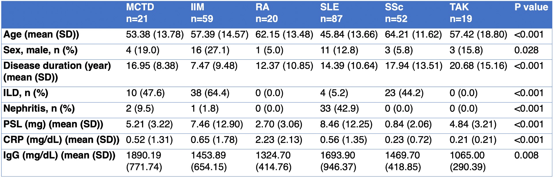 Table 1. Patients’ characteristics in each systemic immune-mediated disease.