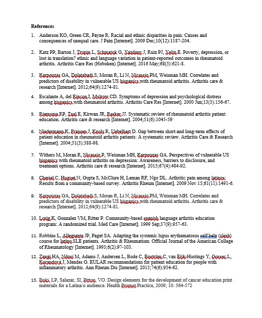 Anna Balakrishnan1, Adena Batterman1, Daniel Hernandez2, Angel Tapia3, Joan Westreich1, Roberta Horton1 and Theodore Fields1, 1Hospital for Special Surgery, New York, NY, 2Global Healthy Living Foundation, Nyack, NY, 3Global Healthy Living Foundation, Upper Nyack, NY