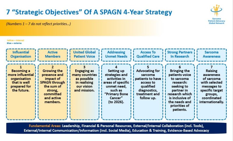 SPAGN’s New Mission:SPAGN is the global network of Sarcoma Patient Advocacy Organisations who support one other and provide a common, influential, international patient voice. Our joy and passion in working across borders drive us to achieve necessary change together with our collaborators.