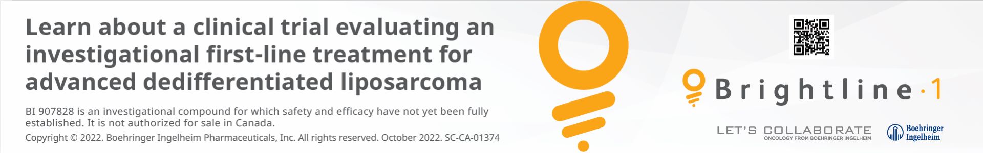 At Boehringer Ingelheim, we make a generational commitment to transforming cancer care. We are taking a diligent and broad approach in some of the most challenging, but potentially most impactful, areas of cancer research. Our goal is to transform the lives of people with cancer by delivering meaningful advances in areas of high unmet need. Dedifferentiated liposarcoma, or DDLPS, is a rare and aggressive form of sarcoma with a poor prognosis. Patients impacted by this devastating cancer have had no new first-line treatment options in 45 years. Boehringer Ingelheim’s Brightline-1 clinical trial is a Phase II/III randomized study of our investigational MDM2-p53 antagonist BI 907828 compared to doxorubicin as a first-line treatment for patients with advanced DDLPS. Brightline-1 is currently enrolling, with over 300 patients planned for enrollment in over 130 sites across Europe, the Asia-Pacific Region, and North America.