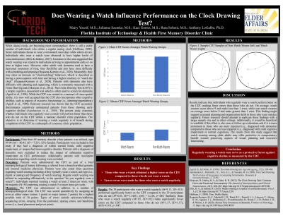 Objective: The present study examines whether individuals who regularly wear a watch will perform better than those who do not on The Clock Drawing Test (CDT) within a memory disorder clinic population.