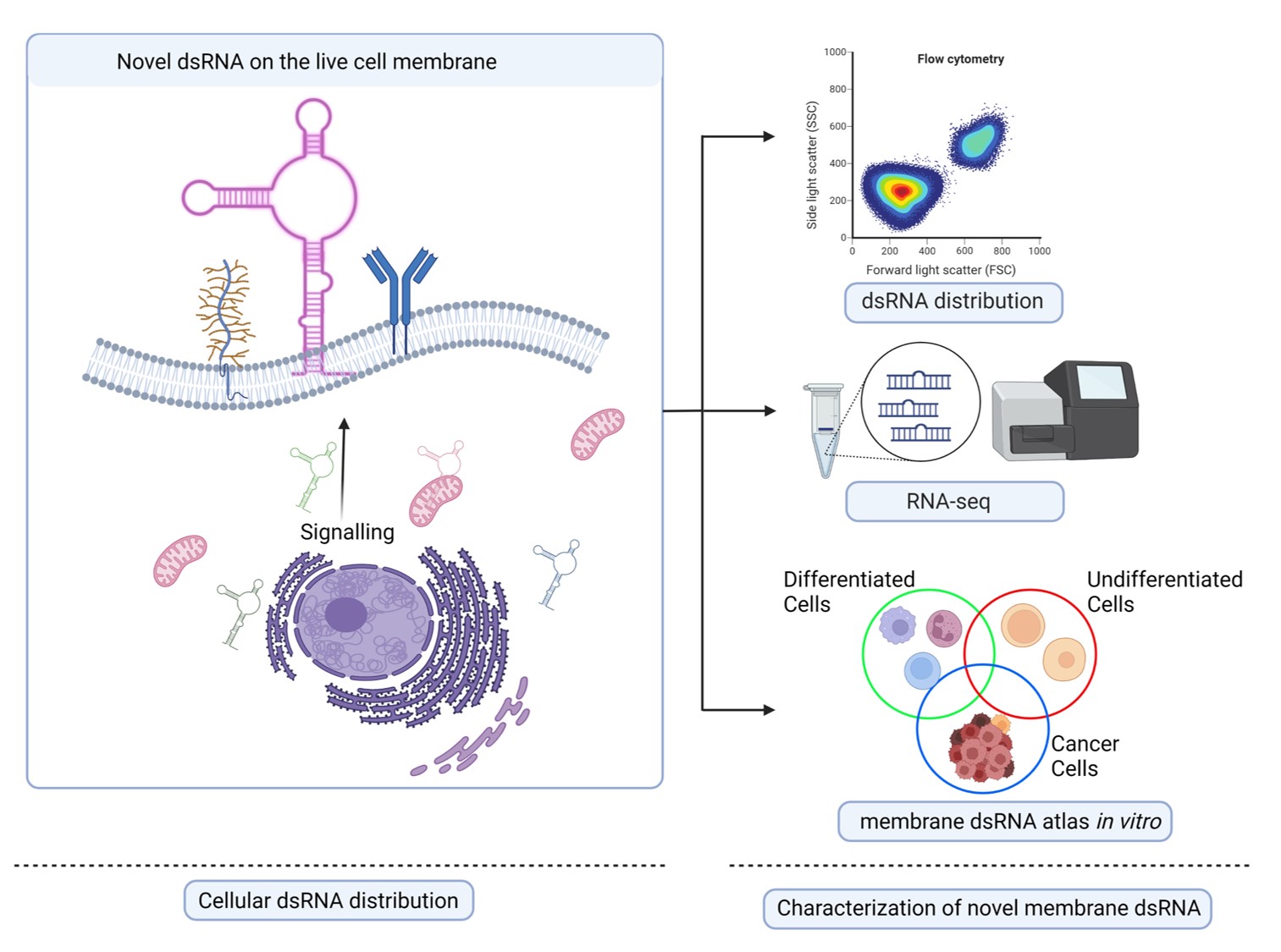 Figure 1: Schematic illustration of the investigation of dsRNA isolated from cytoplasm and plasma membrane of live cells