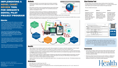 Objective: This poster presentation will describe the iterative process of developing a novel Chart Review tool to assess the minimum standard of care provided by unlicensed dental therapy trainees participating in an approved Dental Pilot Project (DPP). The DPP Program allows organizations to test new or expanded roles for oral healthcare professionals before changes in licensing laws are made. The DPP program is overseen by the Oregon Health Authority (OHA). OHA is responsible for monitoring projects which include Chart Reviews of patient records to monitor for patient safety and the applicable standard of care.