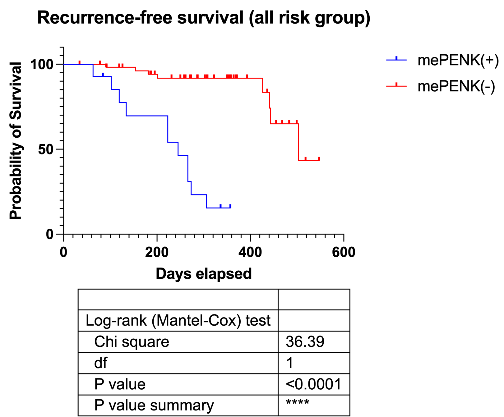Introduction: The objective of this study is to evaluate the efficacy of a PENK methylation test in detecting recurrent non-muscle invasive bladder cancer (NMIBC) and to compare its performance to that of NMP22 and cytology in a prospective pilot study. Methods: A total of 188 patients with a history of NMIBC and scheduled for cystoscopy surveillance after TURBT were enrolled in the study. Urine samples were collected and analyzed using the Linear Target Enrichment (LTE)-quantitative methylation-specific real-time PCR (qMSP) test (mePENK-LTE-qMSP) for measuring PENK methylation, as well as the NMP22 test. The reference standard for NMIBC was cystoscopy and pathology. The mePENK-LTE-qMSP test was conducted with a cut-off value determined by ROC analysis of 32.0, and results were classified as positive or negative. The cystoscopy results were classified as recurrence or non-recurrence, and recurrences were further subcategorized as progression or non-progression. The clinical performance of the mePENK-LTE-qMSP test was analyzed and compared to NMP22 and cytology. Results: The mePENK-LTE-qMSP test had a sensitivity of 78.4% (40/51) and a specificity of 85.0% (108/127) in detecting NMIBC. It had higher sensitivity than NMP22 (P = 0.0106) or cytology (P < 0.001), while its specificity was not significantly different from NMP22 (P = 0.6076) but inferior to cytology (P = 0.0001). Subgroup analysis demonstrated that the mePENK-LTE-qMSP test had a sensitivity of 46.7% (7/15) and a specificity of 96.6% (28/29) in detecting NMIBC among low- and intermediate-risk patients. It also had a sensitivity of 91.2% (31/34) and a specificity of 81.0% (68/84) in detecting NMIBC among high-risk patients. Patients who were recurrence-free at the time of diagnosis had follow-up cystoscopy, at a median follow-up duration of 223 days (n=71). The mePENK test positive patients (n=14) had a significantly shorter recurrence-free survival than test-negative patients (n=57) (245 days vs 503 days, hazard ratio = 9.4 (95%CI 2.4 to 35.9), p < 0.0001). Conclusions: The mePENK-LTE-qMSP test demonstrated high sensitivity and specificity in detecting recurrent NMIBC and accurately excluded non-recurring or non-progressing NMIBC during surveillance. Additionally, it was able to predict NMIBC recurrence before recognition by cystoscopy. SOURCE OF Funding: Genomictree, Inc. of South Korea sponsored this study.