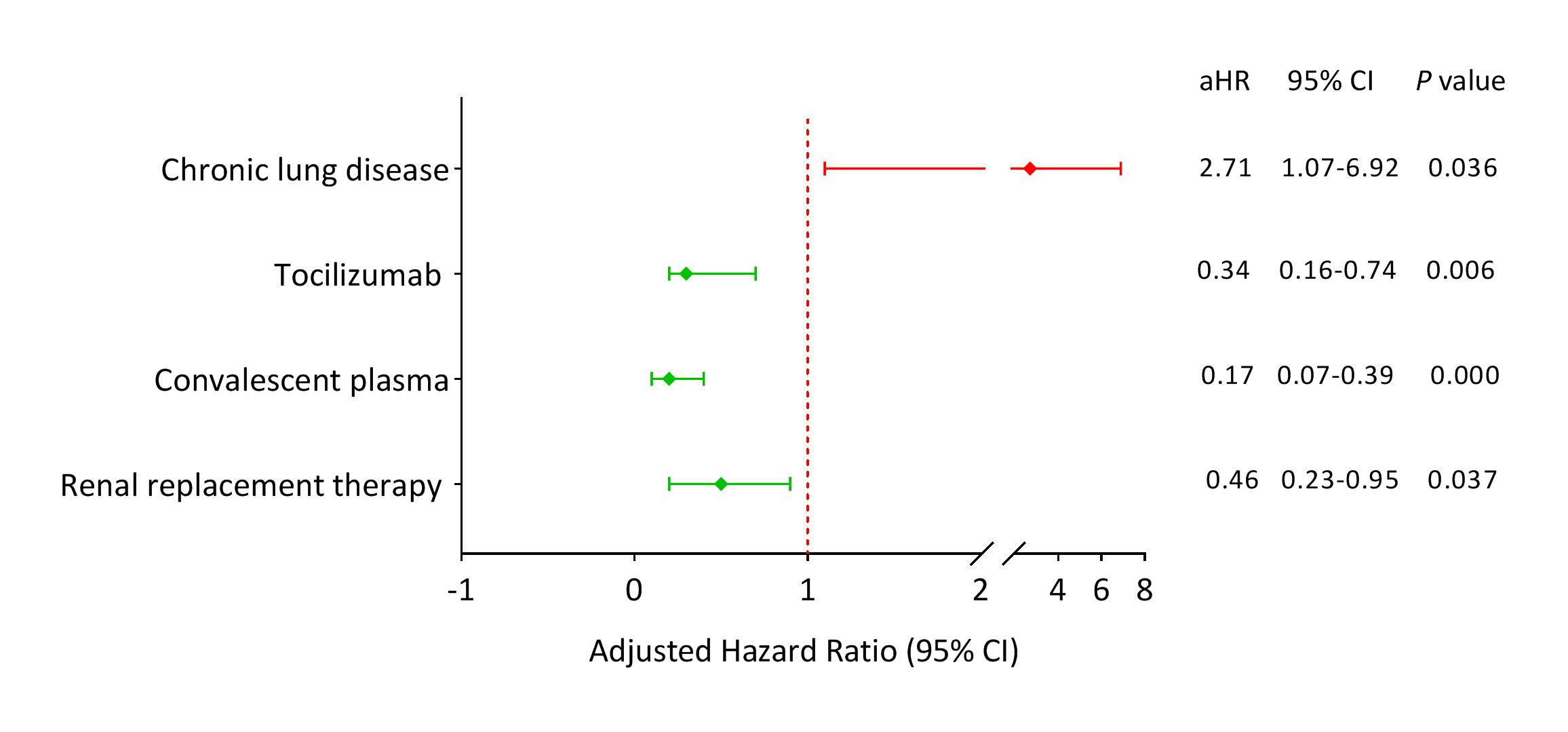 Figure 2. Forest plots for adjusted hazard ratio of in-ICU mortality in critically ill COVID-19 patients required intensive care.