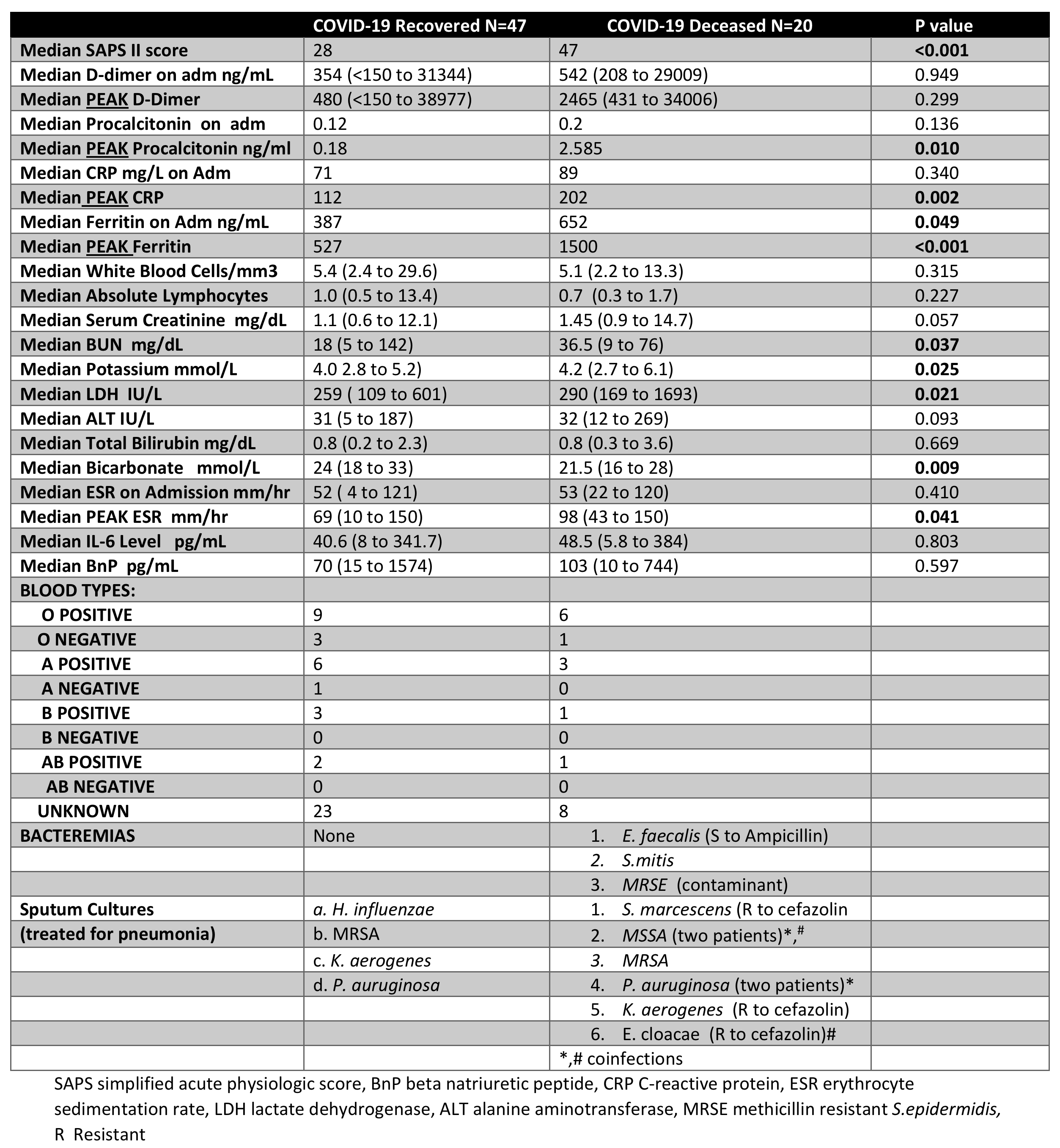 Comparison of Laboratory Data in Recovered vs Diseased Hospitalized Veterans with COVID - 19