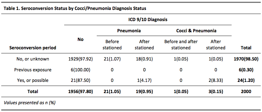 Seroconversion Status by Cocci/Pneumonia Diagnosis Status