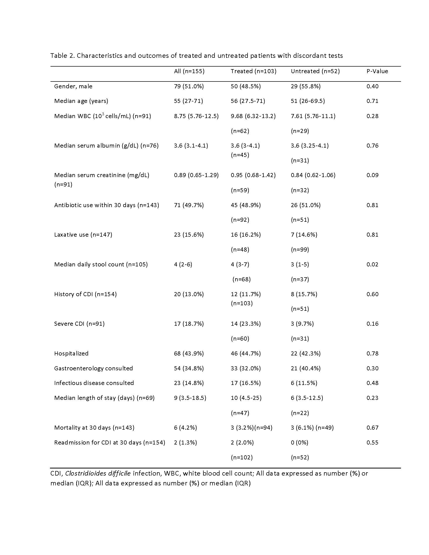 Table 2. Characteristics and outcomes of treated and untreated patients with discordant tests.