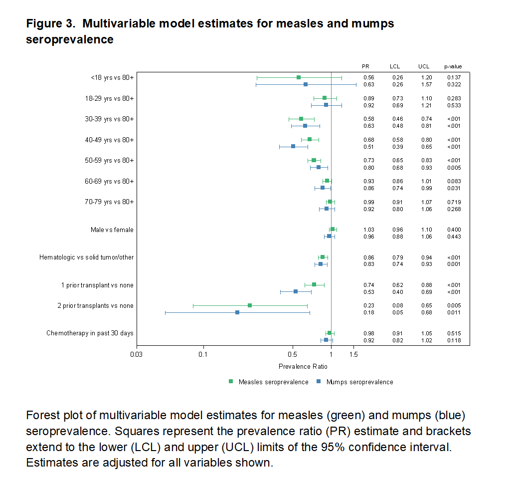 Figure 3. Multivariable model estimates for measles and mumps seroprevalence