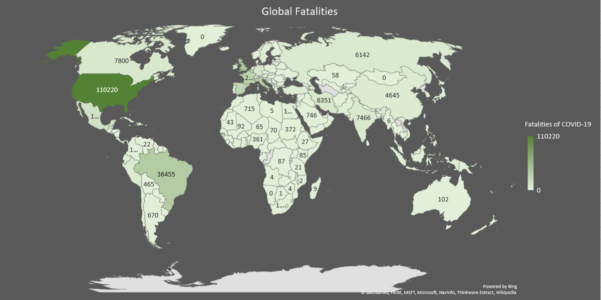 Confirmed fatalities due to COVID-19 globally, as of June 9, 2020.