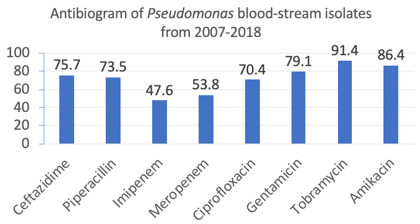 Antibiogram of P. aeruginosa blood-stream isolates from 2007-2018