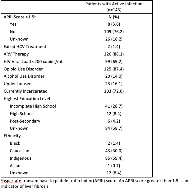 Table 2. Characteristics of HIV-HCV co-infected patients from the NAHP with an active HCV infection (n=143)