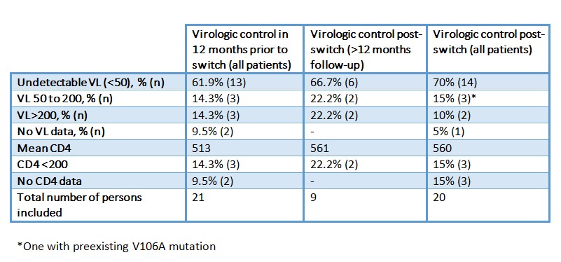 Table 2: Virologic Control Before and After Switching to Dolutegravir with Doravirine.