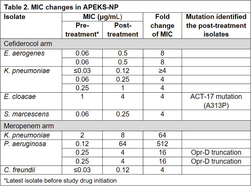 Table 2. MIC changes in APEKS-NP