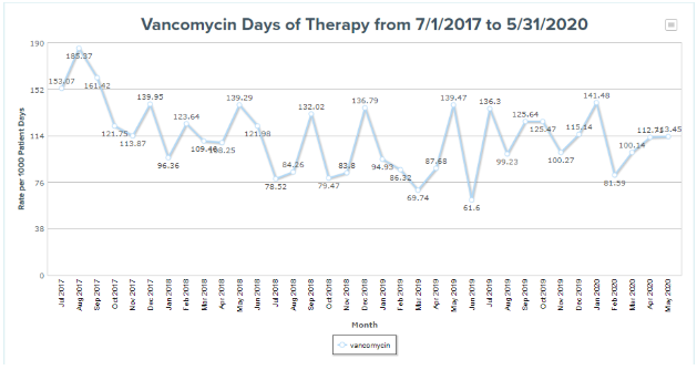 Figure 4: Vancomycin days of therapy per 1000 patient days from July 2017 to May 2020