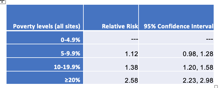 Table 2. Incidence rate ratios for RSV-associated hospitalizations of adults by census-tract poverty level, 2015-2017.