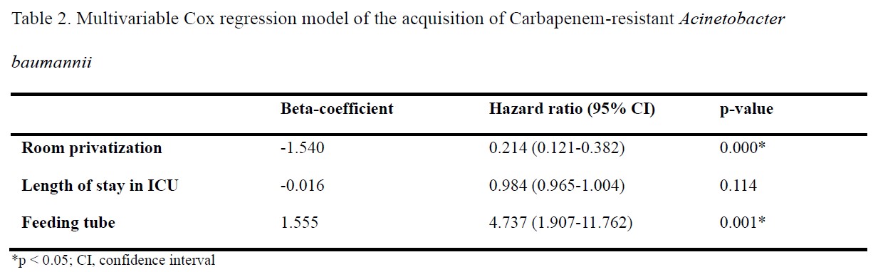 Table 2. Multivariable Cox regression model of the acquisition of Carbapenem-resistant Acinetobacter baumannii