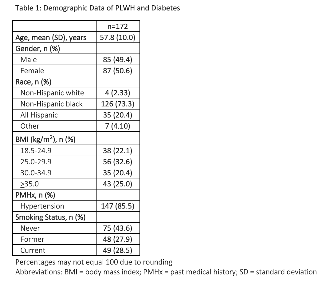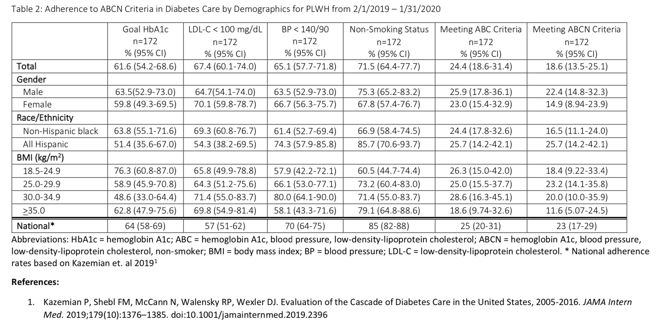 Table 2: Adherence to ABCN Criteria in Diabetes Care by Demographics for PLWH from 2/1/2019 – 1/31/2020.png)