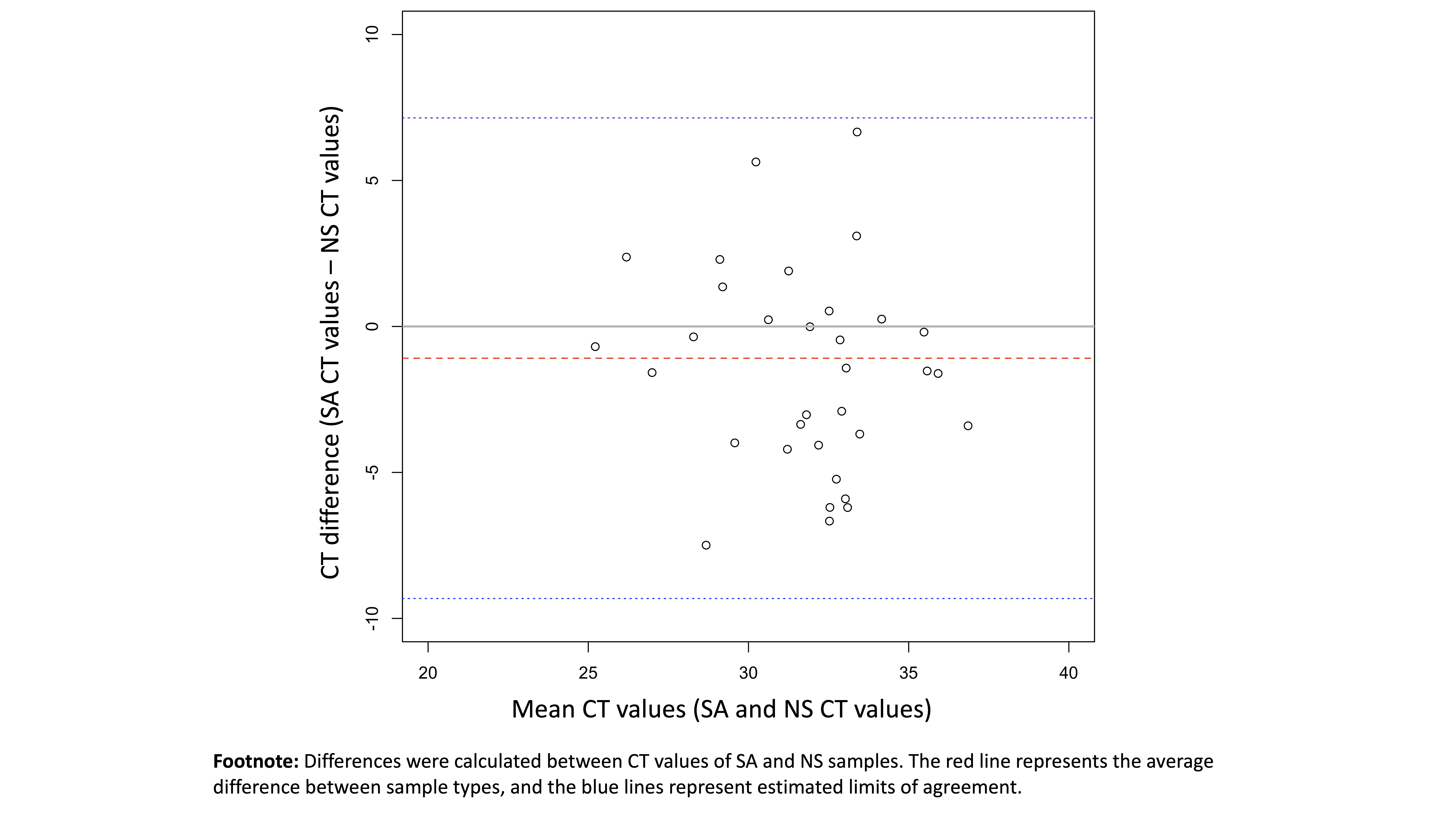 Figure 2. Bland-Altman plot of SARS-CoV-2-N2 CT values for SA and NS samples