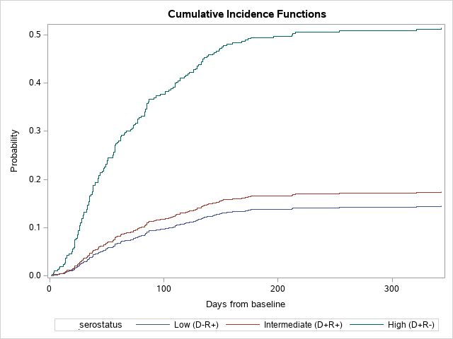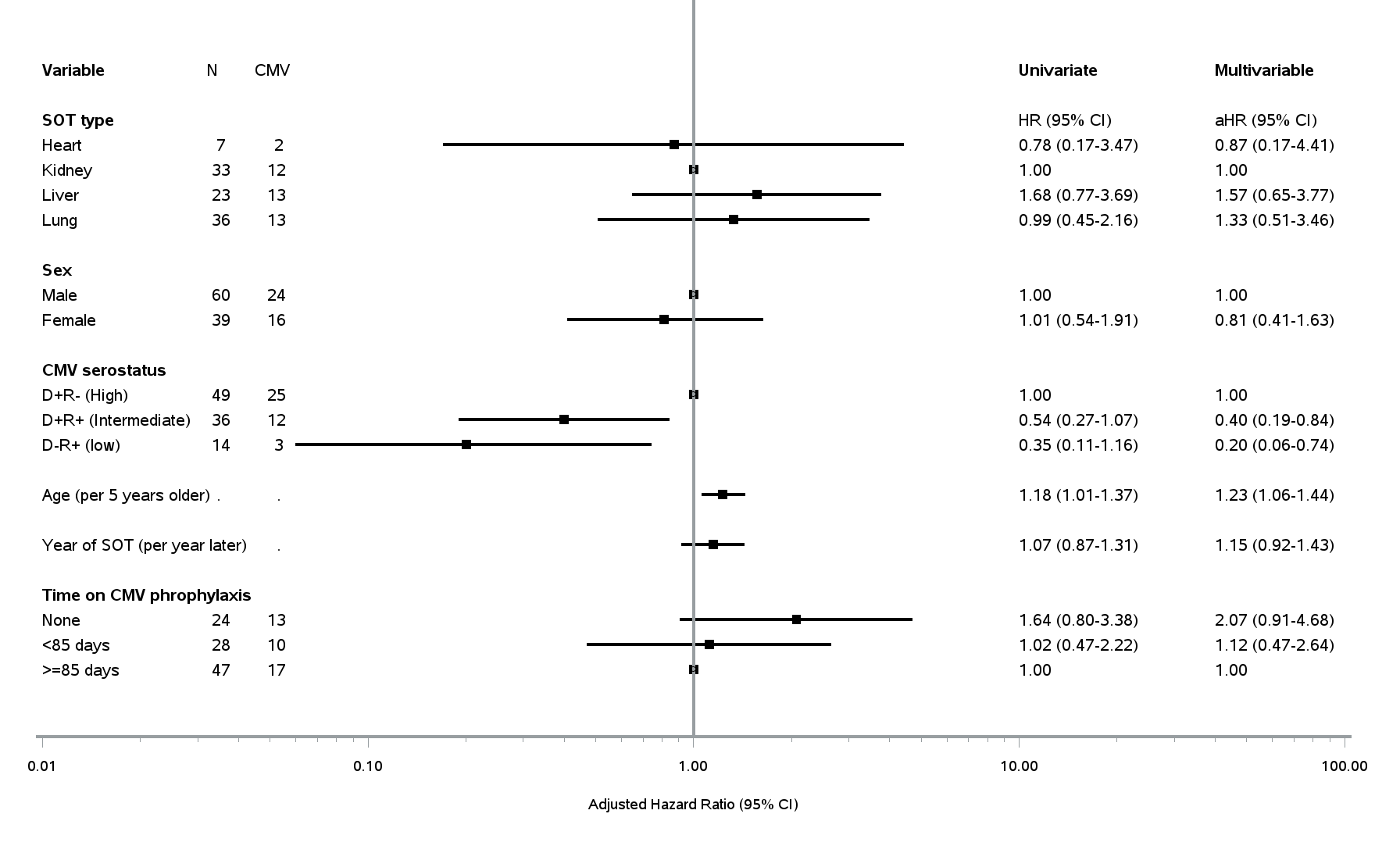 Figure 2 Factors associated with CMV infection in the first year from baseline. Baseline was defined either the date of transplant (n=285) or stopping CMV prophylaxis (n=470).