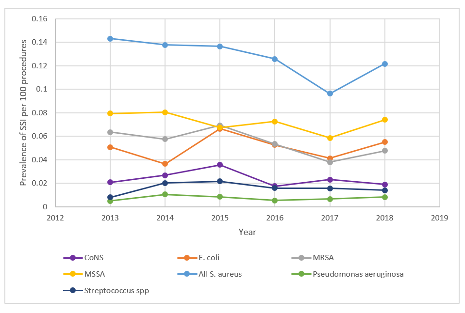 Figure 1: Prevalence Rates of Community Hospital Complex SSIs by Causative Pathogen from 2013 to 2018