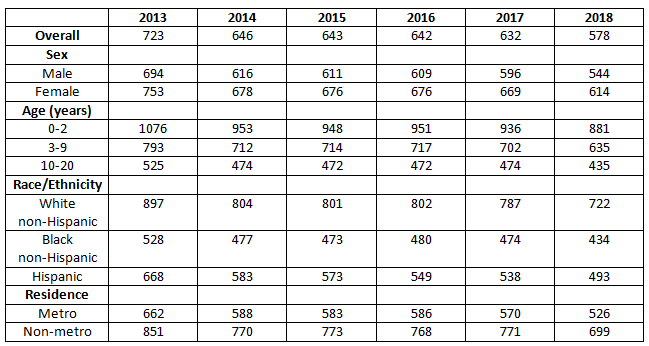 Antibiotic Prescriptions per 1000 Children, by County (2013-2018)