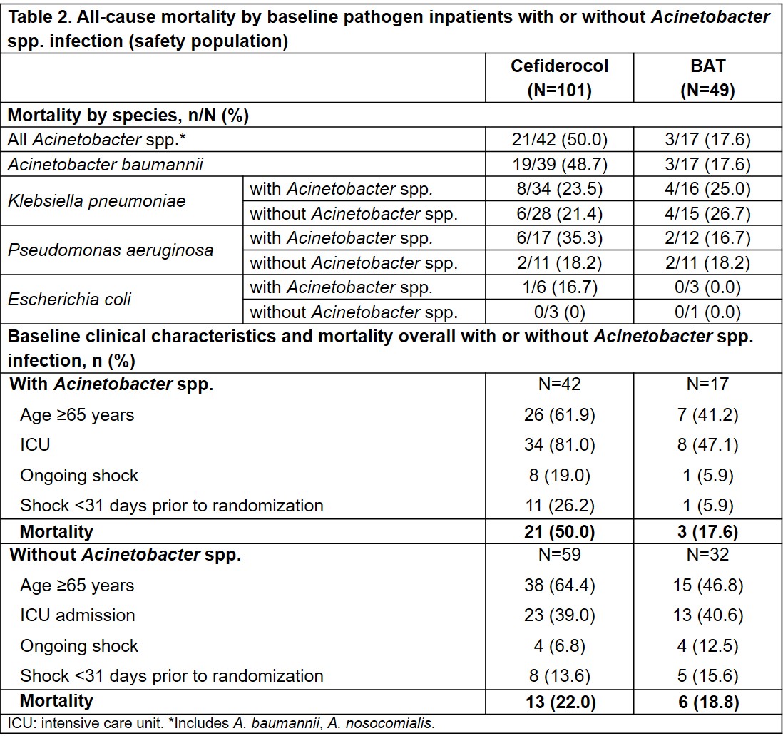 Table 2. All-cause mortality by baseline pathogen inpatients with or without Acinetobacter spp. infection (safety population).jpg)