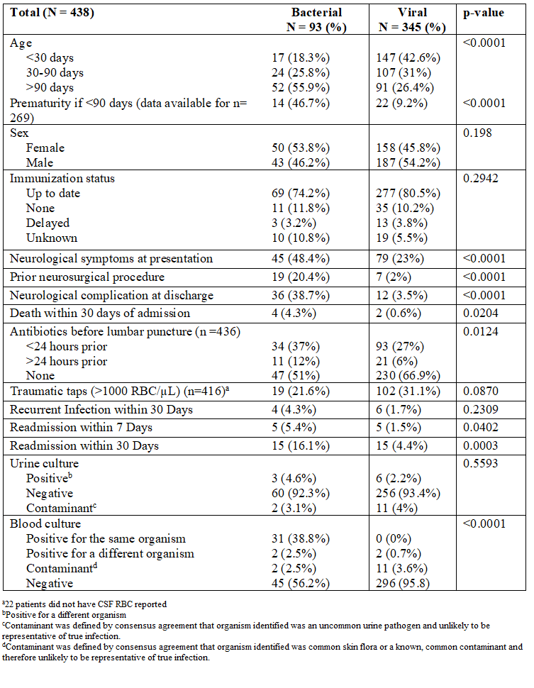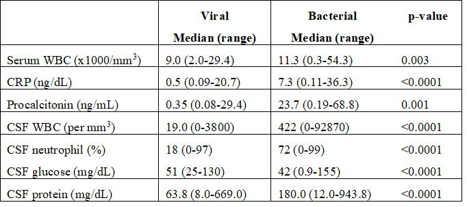 Table 2: Comparison of Laboratory Data by CSF Pathogen Group